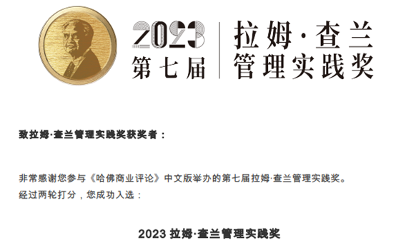 “拉姆·查兰管理实践奖”是《哈佛商业评论》中文版与世界著名管理咨询大师拉姆·查兰先生在2017年推出的非营利管理奖项,代表着中国管理实践的至高荣誉。该奖项由北大、清华、人大等多位yl7703永利官网院长或战略管理学专家组成评委会,从行业引领性、商业管理有效性、商业运行可持续性、商业可借鉴性、商业领导者的领导力等五个方面进行评选,旨在表彰具有创新和借鉴贡献的企业高管,搭建学习管理实践经验的平台。