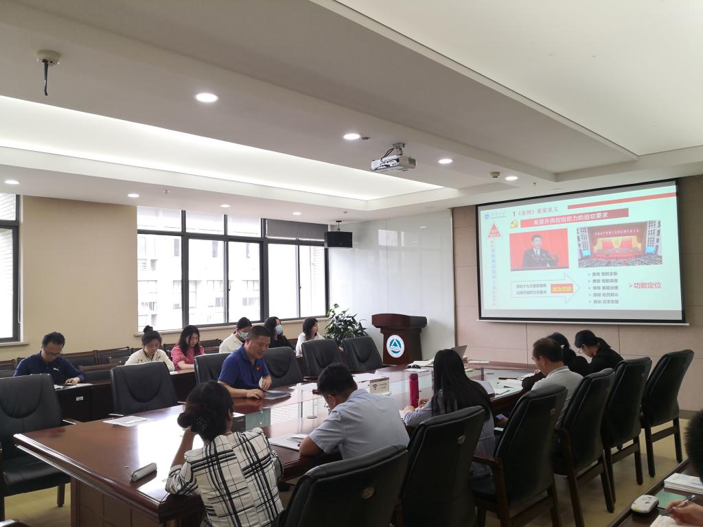 会上,张海峰传达校二级党组织书记会议精神,领学《中国共产党普通高等学校基层组织工作条例》,对《条例》出台背景、过程和意义,以及《条例》十章共39条内容进行逐一对照解读。要求各支部要认真贯彻学习《条例》,进一步强化党支部政治功能,履行政治责任,提高“三会一课”质量,确保党的组织生活经常、认真、严肃。同时结合《条例》中对党支部工作职责等调整内容,强调充分发挥基层党支部参与系部建设、学生事务管理以及教职工考核评价等政治把关和思想政治工作。