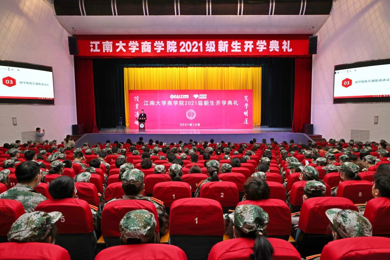 在庄严的国歌声中,典礼拉开序幕。yl7703永利官网院长浦徐进致辞。他对新同学的到来表示热烈欢迎。浦院长介绍了yl7703永利官网作为一流学科建设高校,积极谋划战略布局,努力推进“世界知名、中国一流、江南风格”的研究型大学建设的情况,以及yl7703永利官网的历史沿革、学科建设发展情况,坚持立德树人根本任务,培养“全球视野、中国情景、知行合一”复合创新型经济管理人才的办学理念。他在发言中指出,新一级同学的加入,为不断攀登高峰的江南学府注入了新的活力。“笃学尚行,止于至善”的校训品格和“笃学明道,经业济世”的院训精神,要在新一代“江南商院人”的身上传承下去,并被赋予新的时代内涵。对此他向新生提出了三点希望:一是,笃学尚行,止于至善,做不忘初心的创造者。明确自己的奋斗目标,自觉地在学习中增强创新意识,时刻保持积极奋发的学习劲头,充分挖掘潜能,成为一名政治思想过硬,同时又具备良好科学素养、人文精神以及创新意识的人。二是,少作抱怨,擅于改变,做敢破敢立的逐梦人。勇于跳出舒适区,注重培养自己的综合能力,包括正确认识自我和自我定位的能力,独自面对失败的能力。希望同学们尽快熟悉新环境,融入新集体,并提醒同学们常常问候牵挂他们的父母。三是,建功立业,奉献青春,做勇于奋斗的实干家。当代中国青年与新时代同向同行,生逢盛世,重任在肩,每位同学都要做勇敢的开拓者,做一个有责任感、勇于担当的人,不断锤炼意志,拥有自信积极的心理状态、宽容大度的处事态度。最后浦院长祝愿同学们怀家国天下,立鸿鹄之志,梦圆江南,收获成功,成为未来建设社会主义现代化强国的栋梁之才。