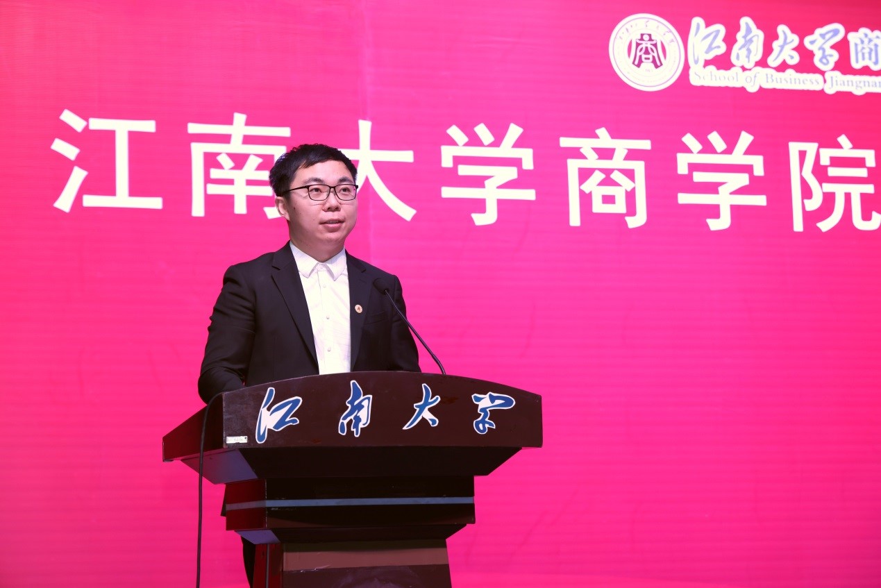 yl7703永利官网2015届经管专业毕业生、现任无锡市惠山区网信办副主任宋睿鑫作为校友代表发言。宋睿鑫回顾了自己的大学时光,表达了他对母校的深厚感情。他鼓励学弟学妹趁年轻去学习一点、去尝试一下、去奋斗一次,通过介绍自己考取江苏省选调生后,分配至阳山镇开展基层工作期间,草创电商平台,推广农产品电子商务市场营销的亲身经历,勉励同学们相信奋斗与梦想的力量,带着yl7703永利官网的光环步履不停,书写自己的人生故事。