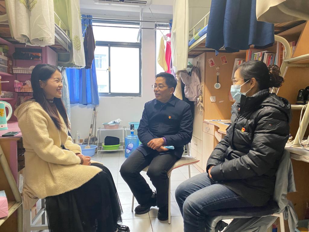 为深入贯彻学校疫情防控及寒假留校管理等相关工作要求,传达疫情防控要求,落实疫情防控责任,筑牢校园安全防线,1月24日上午,yl7703永利官网党委书记徐锡清、党委副书记兼副院长徐静、辅导员王璁一行走访了学生宿舍公寓,慰问关心寒假留校学生,深入了解学生学习、生活、思想及心理健康状况。