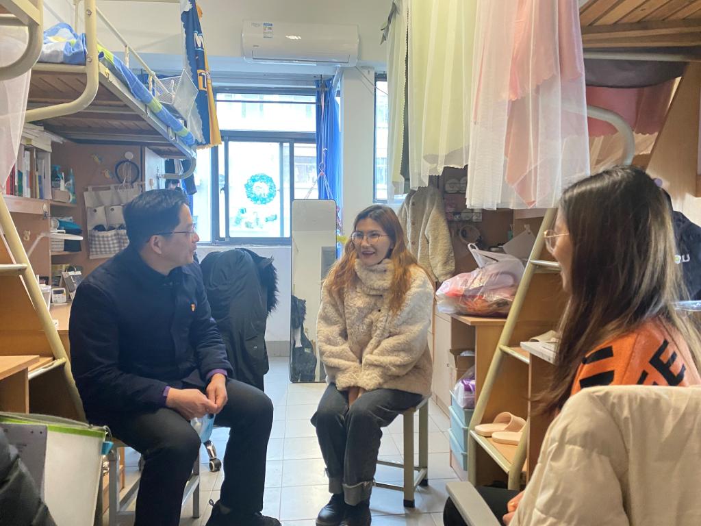 学院领导尤为关注寒假留校学生的假期安排、学习计划及困难需求。走访浩苑61号楼312宿舍时,徐锡清书记、徐静副书记对2019级金融专业本科生娅库提罕乃姆·乌布力喀斯木和阿达来提·艾海提表达了学院的暖心关怀和真切问候,细致了解了留校事由、心理情绪及父母联络等情况,叮嘱其配合学校疫情防控,服从学院留校管理,自觉做好个人防护;浩苑61号楼301宿舍,由来自河北邯郸的张硕和来自天津的吴瑶合并住宿,两人因学科竞赛和专业实习而选择留校。交流中,徐锡清书记询问关心了学生的备赛情况和参与感受,鼓励其在学科竞赛中赛出水平、赢得佳绩,同时提醒其利用好假期黄金时间,合理安排学习、科研计划,健康作息、劳逸结合。